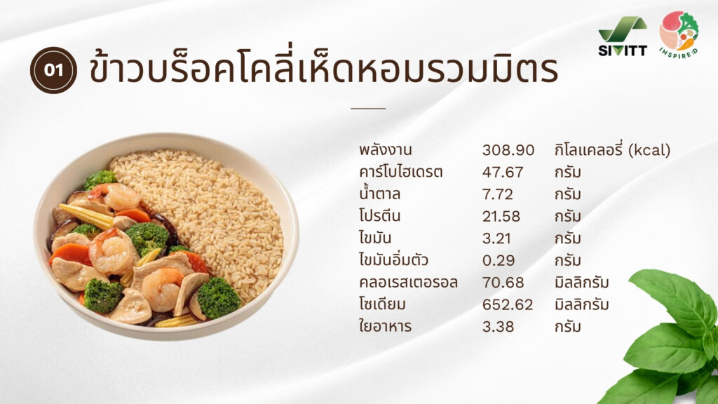 1.ข้าวบร็อคโคลี่เห็ดหอมรวมมิตร ผักสดกรอบ สีสันน่าทาน ไฟเบอร์สูง อิ่มนาน เบาสบาย เหมาะกับทุกมื้อ ไฟเบอร์สูงพลังงานต่ำ