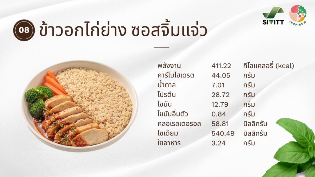 🌾 ข้าวกล้อง : เสิร์ฟพร้อมข้าวกล้องที่อุดมด้วยใยอาหารจากธัญพืชเต็มเมล็ด ช่วยให้อิ่มนานขึ้นและเพิ่มใยอาหาร