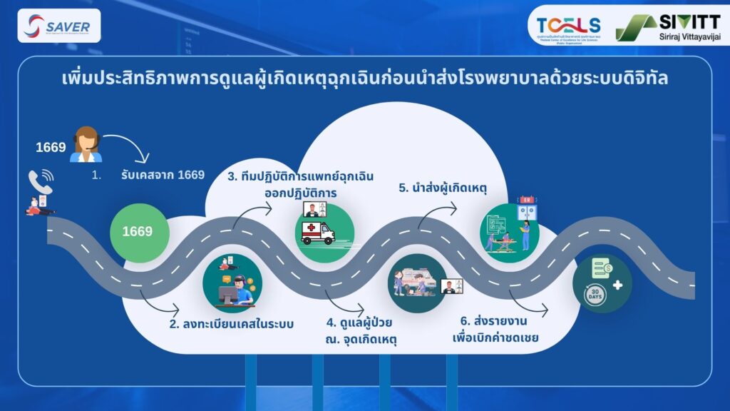 จาก Siriraj EMS ที่พัฒนาขึ้นเพื่อใช้งานในศูนย์การแพทย์ฉุกเฉินศิริราช สู่การต่อยอดเพื่อเพิ่มการเข้าถึงในวงกว้างและสามารถใช้งานได้ในหน่วยบริการการแพทย์ฉุกเฉินอื่นๆ โดยความร่วมมือกับพันธมิตรจากหลายภาคส่วน ทั้งรัฐและเอกชน เพื่อประโยชน์ต่อสังคมไทยแบบยั่งยืน